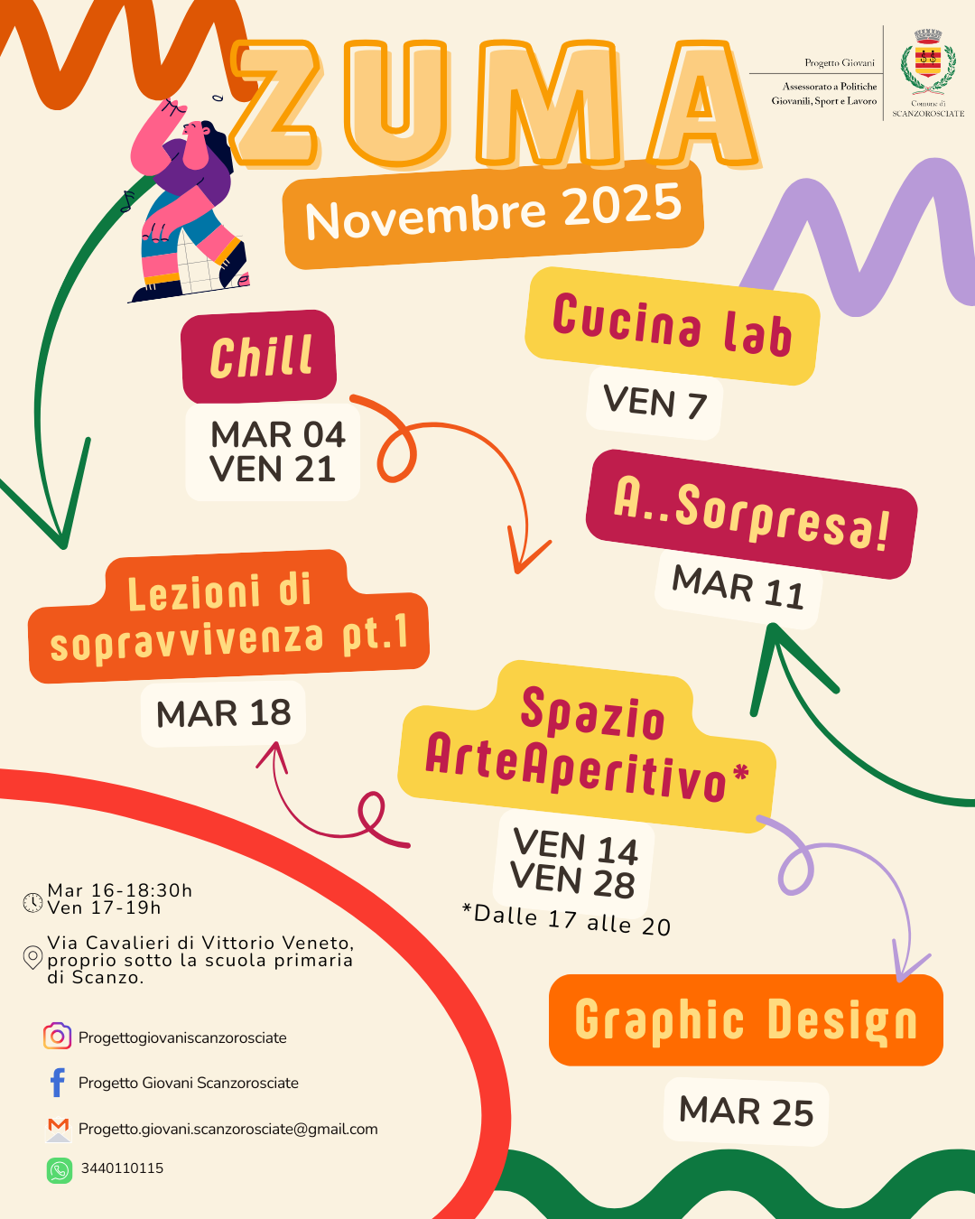 Lo spazio ZUMA in via Cavalieri di Vittorio Veneto, sotto la scuola primaria di Scanzo, è aperto nelle giornate di: