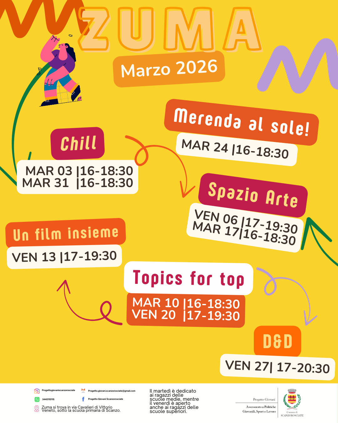 Nuove proposte per il mese di marzo dei servizi aggregativi di ZUMA, per ragazzi e ragazze delle scuole secondarie. Per ritrovarsi e fare attività divertenti sotto la guida di educatori esperti.